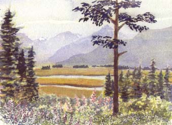 Back Window from Blueberry Lodge...This painting is now in the collection of the Blueberry Lodge.. For fine bed and breakfast accomodations call Jay and Judy at (907) 463-5886.