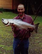 I had purchased a full year nonresident fishing license on an earlier visit and was considering another hundred dollars for a full year king salmon stamp. But on average it takes twenty three hours of angling to catch one, and as a nonresident I would only be allowed one for the entire calendar year. The big kings are more common up on the Kenai, so it would have to be a pretty large Juneau area king salmon to make the hundred dollar stamp more economical than the local supermarket at three or four dollars a pound. I could fish as much and wherever I wanted without a king salmon stamp but if I hooked one I'd just have to let it go. Thinking the odds were against me anyway, I was willing to fish for knowledge and let any kings go. My decision changed when on the day I read that the entire area of waters on the east side of North Douglas Island are included in opening of the Juneau Terminal Harvest Area, where regulations are cast aside for the return of a thousand or more hatchery king salmon that will not spawn anyway. Every year they release smolts in Fish Creek pond and they thrive for a season then leave for the open waters, but when they return to their imprinted waters they will not find appropriate spawning habitat. Not only do fish caught here not count against the nonresident yearly allotment, but use of bait and even snagging is allowed. This was enough incentive to purchase the stamp, and soon thereafter the yearly allotment for nonresidents was increased to three fish instead of one. I was now happy to buy the permit and confident that even if I did not get a hundred dollars worth of salmon to eat, I would learn more then a hundred dollars worth of information by targeting these kings while they were around.