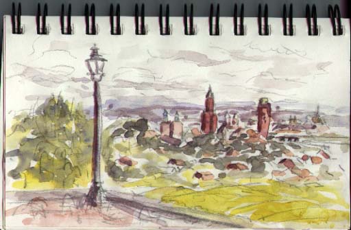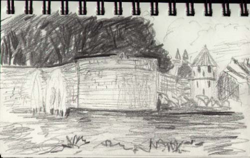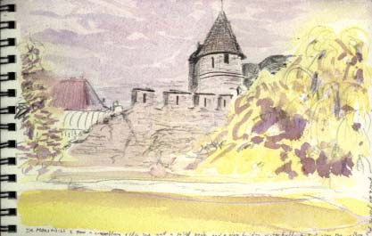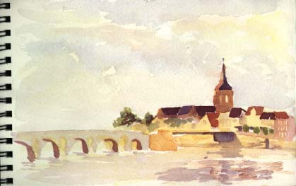Maastricht is birthplace of the united European currency, the oldest city in the Netherlands and dates back to the Romans around 200 AD. Inside the central city are concentric rings of walled medievel architecture, churches, turrets, castlework embattlements protecting curving narrow blocks lined with small shops and corner cafes. After the hustle of Amsterdam it was a pleasure to roam around quaint and quiet Maastricht. The local motto is "the Art of Fine Living" so I shopped, enjoyed the eten & dranken, and gazed amazed at the views when I wasn't painting or sketching.