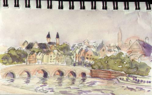 In the evening I painted the old bridge again, this time from the west side looking northeast.