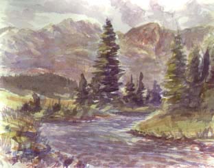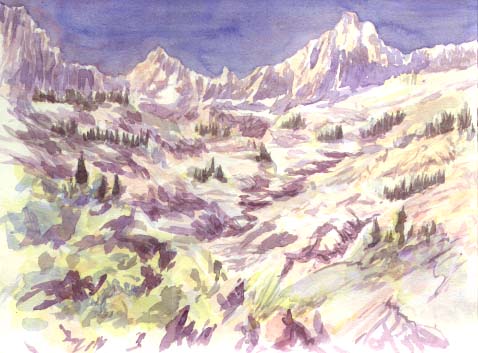 It seemed trout heaven but I didn't intend to fish. At dawn I took a hike up Thomas canyon, a small creek without lakes, for solitude and a sketch. Though I intend to do some more work on it, I feel good enough to show it as it is.