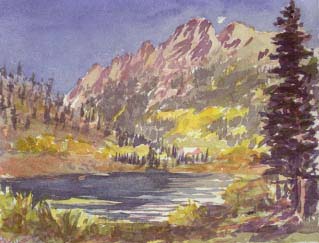 I drove up to Rocky Mountain National Park from Nederland via the Peak to Peak highway on a day as sunny and beautiful as I had expected of September in the rockies. The air was crisp and clear, the sun blazed the turning aspens intermixed among the pines and rocky ridges. I stopped first at Lily Lake, a home of the native greenback cutthroat trout, and walked the shoreline looking for a suitable place to sit and sketch without being obtrusively close to the footpath. After getting away from the parking area I started seeing trout darting from among the shoreline weeds to take small brown mayflies with a splash. As I approached they would dart under the cover of the weedbeds. I have fished here before but today I did not have a license and felt more like painting in the rare good weather. Enough others were fishing the small lake to give the fish exercise in this catch and release water so I fished vicariously by watching them. One person was out in the middle casting dry flies from a float tube, two were casting lures near the parking lot, and one fly angler was working quietly through the trees along the shoreline toward me. He stealthily crouched and hid behind trees as he cast just ten feet for the trout I saw rising. He caught most of them, bringing them in quickly and unhooking them in the water. As he worked his way closer I saw he was fishing a short bamboo rod. My asking brought forth his pride in it. He had made it up himself from an Orvis blank,with distinctive red and black windings. It was perfect for these short and delicate casts and its natural springiness came alive with the ten to twelve inch trout he was playing most of the time. Watching him was entertaining and educational as a good fishing book and far beyond comparison to television fishing shows.