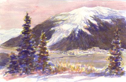 When a four day weekend became available I flew to Juneau. Ostensibly my reasons for visiting were to reconnoiter the art scene, buy maps and guidebooks, meet John and sample the Juneau art scene, but I came to meet Dianne in person. She picked me up at the airport and at first sight I was a smitten teenager again. Just as routine had taken over, life was brand new again. Four days are so short that we stayed up most of the nights, talking, reading to each other, and sharing our mutual perspectives of our quite different lifestyles.