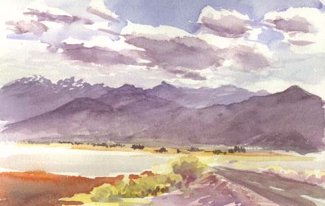 Surprise Valley, on site watercolor, 9" x 13", matted for standard 16"x20" frame...$175