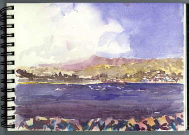 Tomales Bay, on site watercolor, 6" x 9", matted for standard 11" x 14" frame...$125