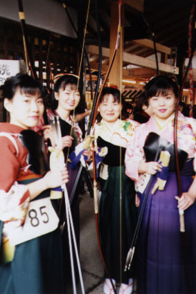 Friday was the Coming of Age holiday, our day for sightseeing around Kyoto. We had read of the centuries-old traditional Kyudo archery tournament at Sanjusangendo temple and followed among the many archers and tourists walking in that direction from Kyoto station. The light rain was cause for concern for the beautifully crafted bows, laminated from strips of bamboo and finely lacquered. The Japanese are not yet known for the finest bamboo fly rods but after seeing their longbows I think they could be.
